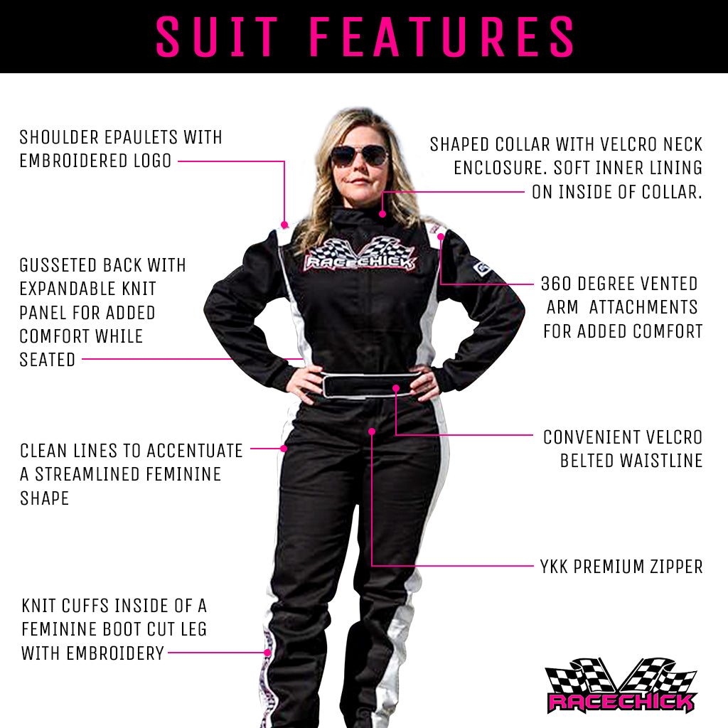 We are the only 'female-only' racing safety company in the industry. This is our niche and we are in constant development to keep improving on our women's fire suits and to be able to offer more product offerings to our community of women racers.